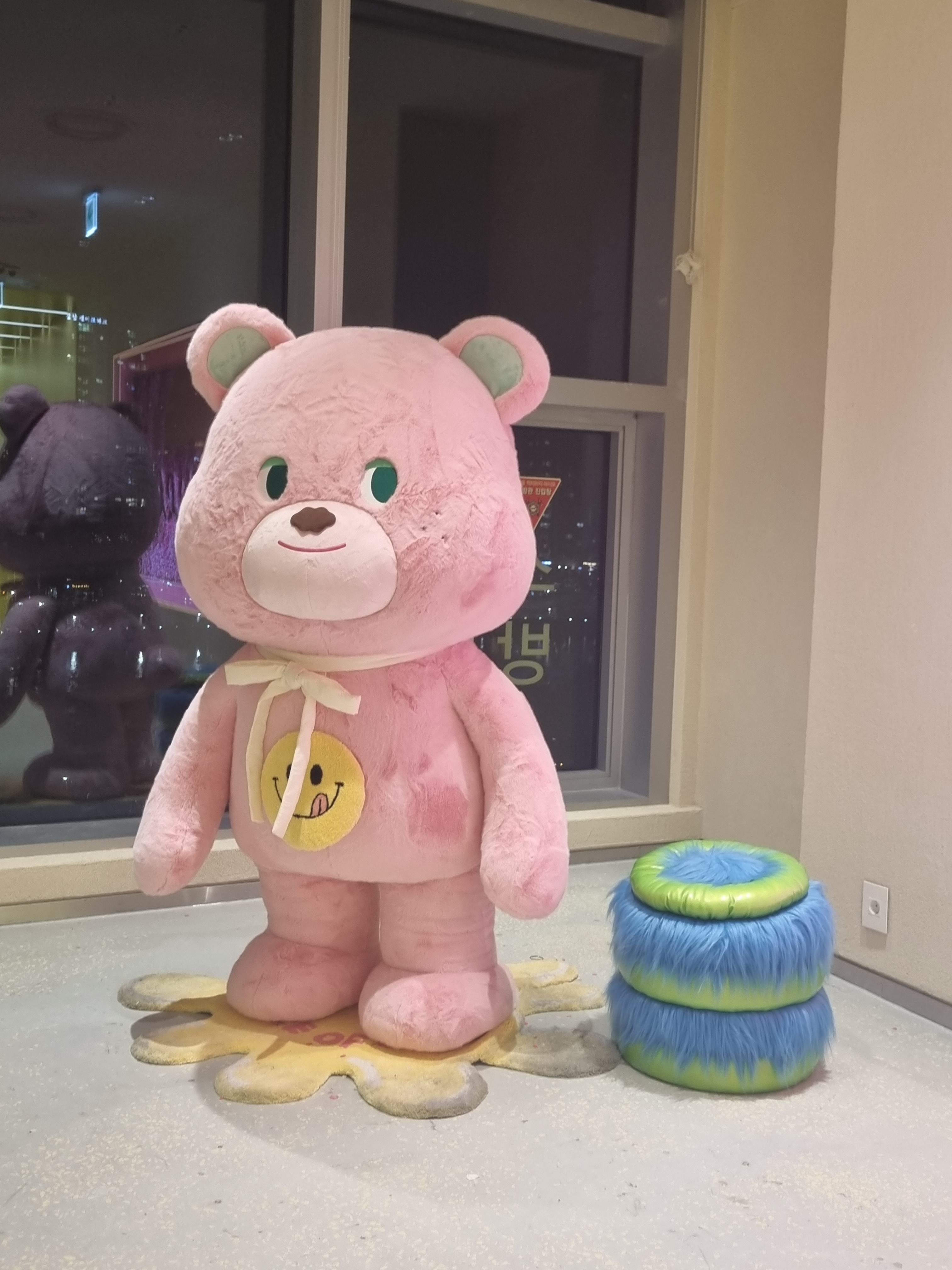 노티드 월드에 가면 가장 먼저 눈길을 사로잡는 것이 바로 귀여운 캐릭터들이에요. 왕크니까 왕귀여운 노티드 캐릭터 슈가베어가 귀여움을 뽐내고 있고요. 노티드의 상징이자 대표 디저트인 컵케이크를 구현한 전시물도 볼 수 있어요.