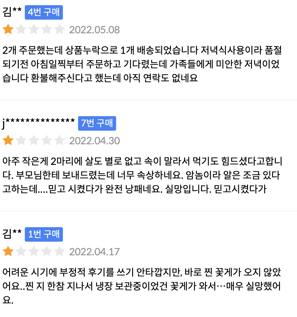 또, 오늘회는 계열 확장으로 퀄리티 컨트롤에 실패한 걸로 보고 있어요. 부정적인 리뷰가 굉장히 많은 것도 이를 반증하고요. 배송에 대한 것도 있겠지만, 식품 품질에 대한 불만도 꽤 많았거든요. 불만족 고객 한 명이 만족 고객 수십 명보다 더 많은 영향을 끼친다는 것을 안다면, 초기 단계에선 다양성보다 자신 있는 영역에서 검증되고, 통제 가능한 공급업체에 집중하는 것이 더 좋은 전략이 아니었을까 싶어요.