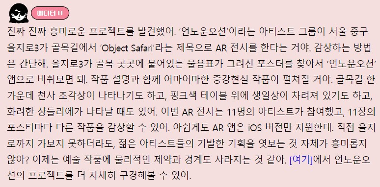 뉴스레터 까탈로그의 장점 중 하나는 쉽게 술술 읽힌다는 건데요.