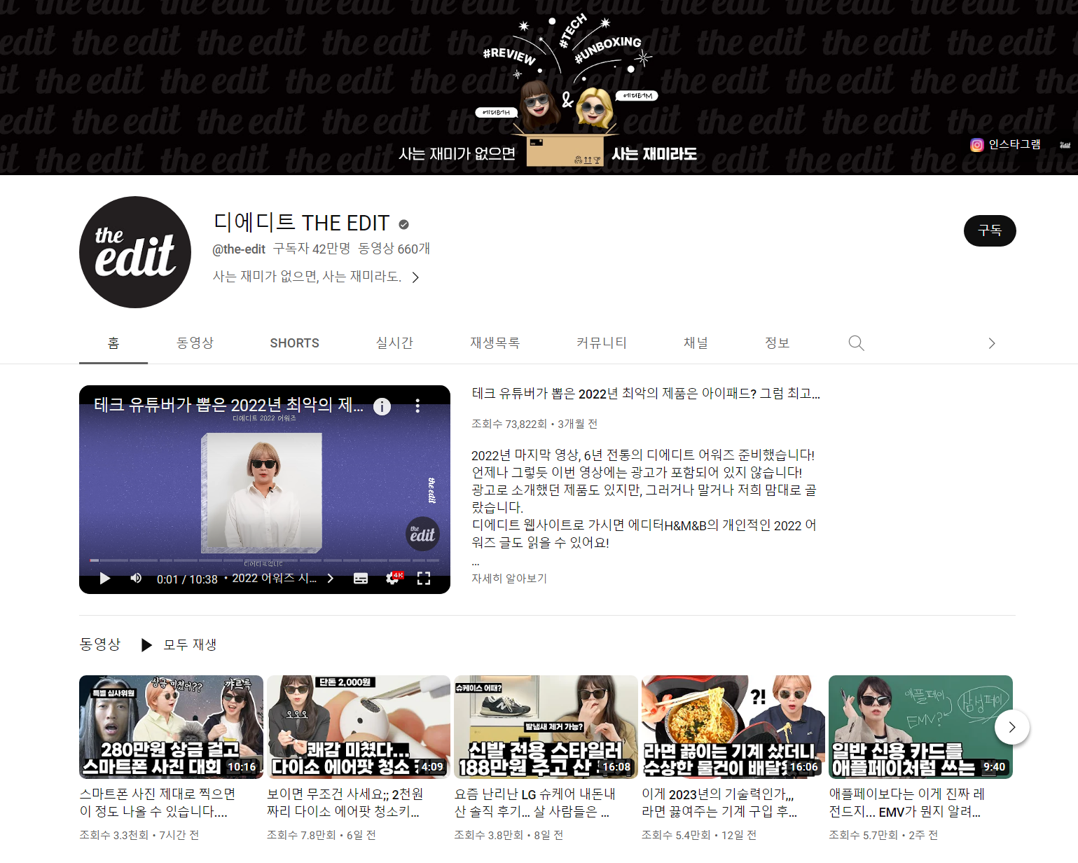 현재 기준으로 유튜브 구독자수 약 60만 명(디에디트, 디에디트라이프 포함), 인스타그램 팔로워 8.3만 명. 디에디트의 뉴스레터 '까탈로그'는 이미 22년도 9월에 11만 명의 구독자수를 넘겼고요.