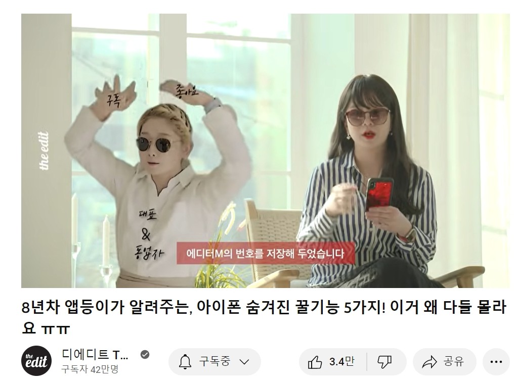 2019년 한 마케팅 컨퍼런스에서였어요. 미디어 스타트업의 마케팅 사례를 발표하는 세션에 등장한 두 언니들(에디터M과 에디터H) 그 당시에 디에디트는 그렇게 유명한 유튜브 채널이 아니었는데도, 얼마나 멋지던지요. 저는 그렇게 두 창업자들에게 반해 계정 구독을 하게 되었어요.