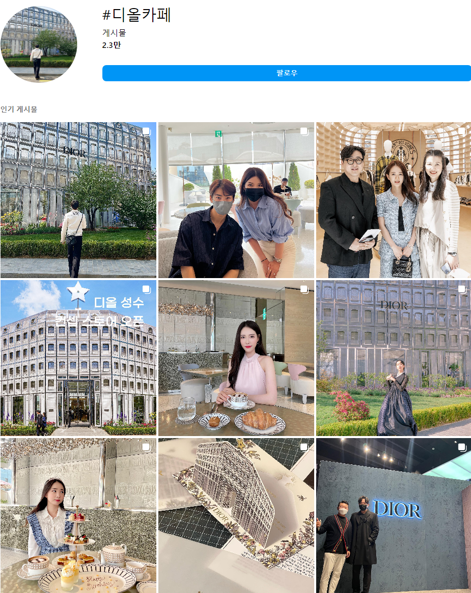 성수동의 디올 팝업스토어는 커피 한 잔이 2만원이지만, 예약을 해야만 방문할 수 있을 정도로 핫플로 떠올랐고요.인스타그램에 #디올카페 해시태그로 게시물이 2만 개가 넘게 업로드되어 있어요.