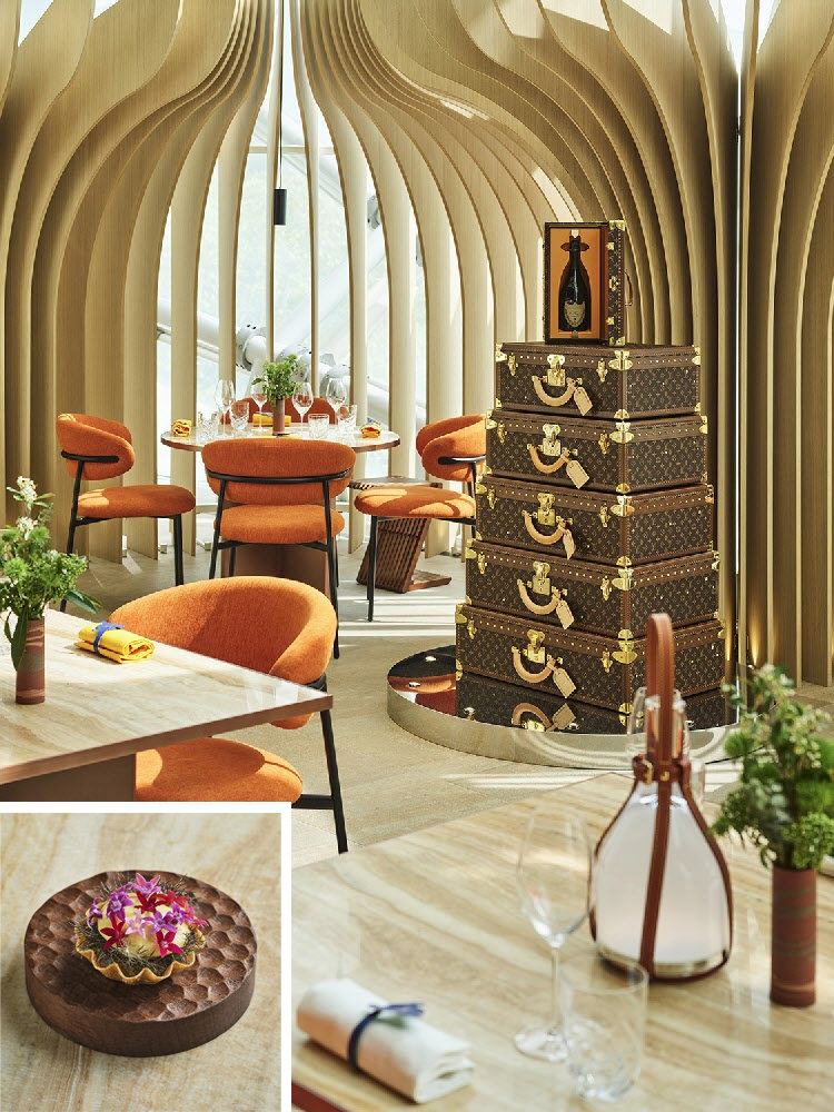 루이비통은 압구정에서 5월 4일에서 6월 15일까지 런던 미슐랭 2스타 레스토랑 '이코이'와 함께 팝업레스토랑을 오픈했는데요. 루이비통 고유의 감성을 경험할 수 있는 공간으로, 이전에 두 차례 열었던 팝업레스토랑은 모두 5분 만에 사전 예약이 마감되었대요.
