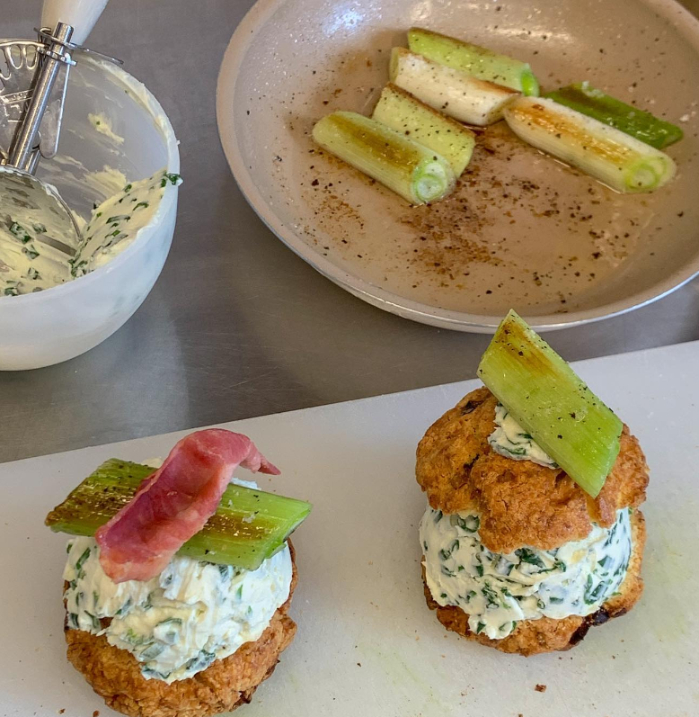 먼저 '카페페퍼'가 선보인 대파 크림치즈 쌀스콘은 쌀로 만든 스콘 위에 대파와 체다치즈가 들어간 베이스를 올리고, 대파 크림치즈를 함께 곁들인 메뉴예요. 포슬포슬한 스콘과 함께 꾸덕한 크림치즈, 그리고 익은 대파의 달달한 맛을 올린 게 가장 큰 특징입니다. 보통 많은 사람들이 '파'라고 했을 때 떠올리는 음식은 파무침, 파김치 등 파의 알싸한 맛을 활용한 반찬에 가까운데요, 카페페퍼는 담백하고 달달한 파 본연의 맛에 더 집중함으로써 호기심을 증폭시켜요. 이에 따라 카페페퍼가 선보이는 대파의 매력을 들여다볼 수 있답니다.