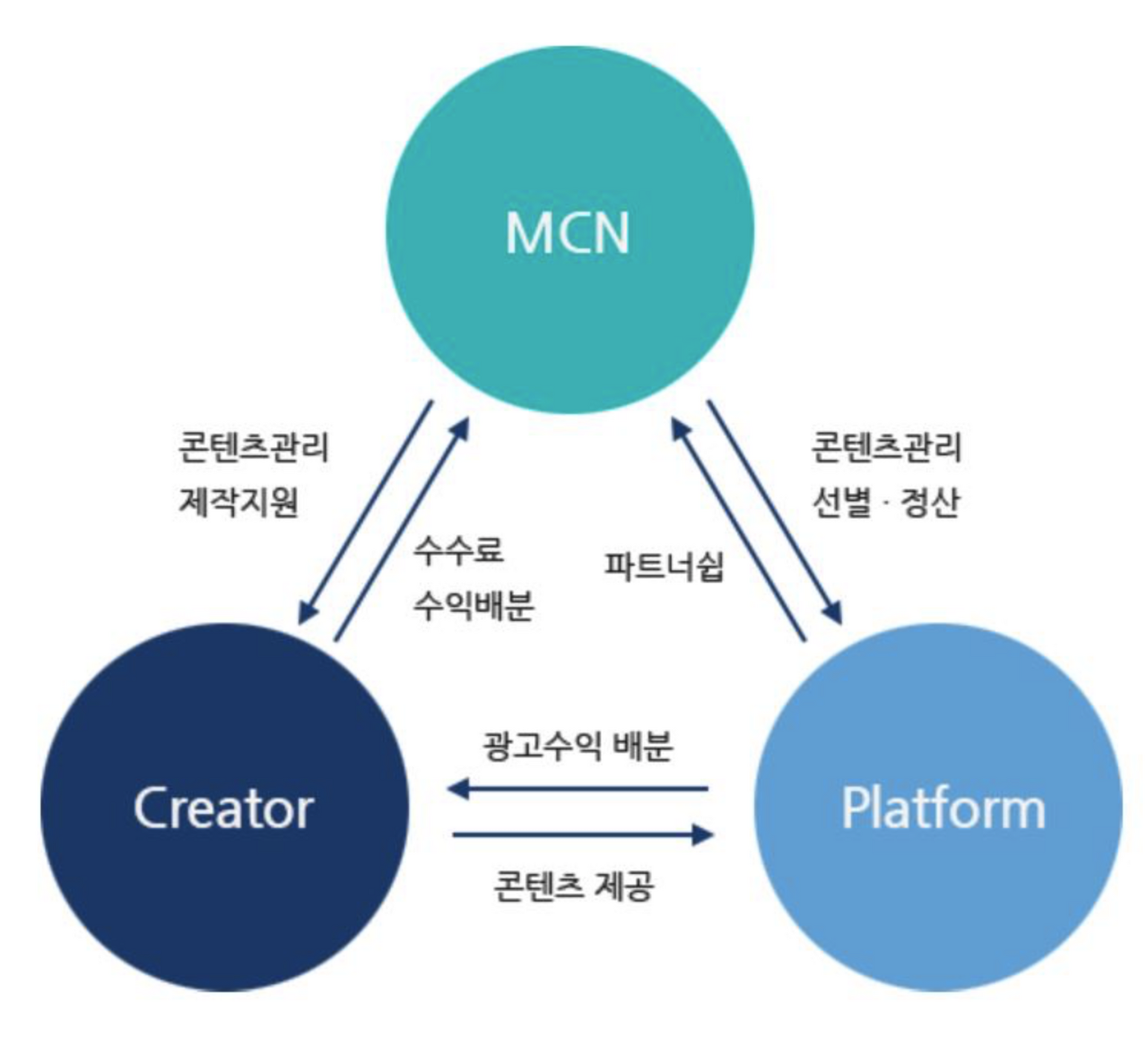 MCN은 기본적으로 크리에이터의 콘텐츠 제작을 지원하며, 크리에이터가 창출한 수익에서 수수료를 가져가며 수익을 창출하고 있어요. 여기서 가장 큰 부분이 바로 광고인데요. 광고로 수익이 발생하면 일정 부분 수수료로 가져가는 게 MCN의 가장 근본이 되는 수익 모델이에요.