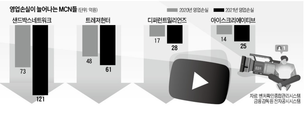 적자에는 ‘크리에이터 확보’도 한 몫해요. 경쟁사끼리 큰돈을 불러 유명 크리에이터를 영입하려는 경쟁전이 꾸준히 이어지고 있거든요. 이 경쟁에서 출혈이 불가피했던 거예요. 관계자는 ‘무리한 영입 경쟁이 부담됐을 것’이라며 유명 유튜버 영입을 위해 수익 배분율을 높게 몰아준 사례가 있을 거라고 본대요. 아마 이런 무리한 외형 확장이 기업의 질적 성장에 안 좋은 영향을 미친 듯해요.