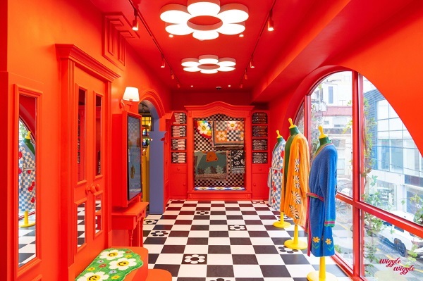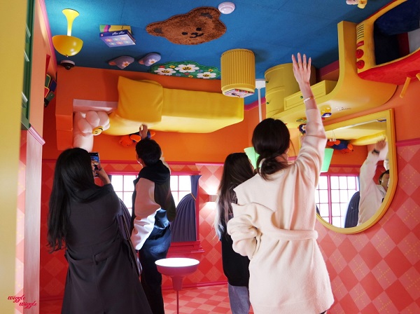 인스타그램에 자주 등장하는 인증샷 존 또한 매우 유니크해요. 총 4개의 층을 스마일 룸, 드레스 룸 등 콘셉트에 맞게 구성, 다채로운 체험 공간을 마련했어요. 1층에는 위글위글의 다양한 포토 프레임으로 사진을 찍을 수 있는 포토부스, 3층에는 침대, 화장대 등 모든 가구가 천장에 붙어 있는 새로운 세상을 담은 플립 룸이 준비되어 있어요. 위글위글집 도산은 정말 눈이 즐거운 공간이에요.